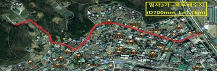 작년에는 수도사고 예방 및 적수민원을 해결하기 위해 엄사지구 배수관로 정비사업을 시행했다.