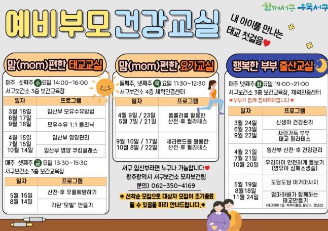 뉴한국방송뉴스통신사 김성의 기자 | 광주광역시 서구는 건강한 출산과 올바른 육아 지원을 위해 ‘예비부모 건강교실’을 본격 운영한다.