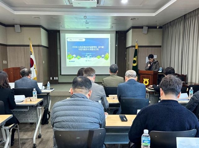 뉴한국방송뉴스통신사 신유철기자 기자 | 서귀포시는 19일 서귀포시축협 축산물플라자 세미나실에서 국립공원연구원 연구진, 지역 주민 등 20여 명이 참석한 가운데 ‘서귀포시 도립공원(성산일출해양, 제주곶자왈) 자연자원조사 최종보고회’를 갖고, 지난 1년간의 조사 성과와 향후 관리 방안을 공유했다.