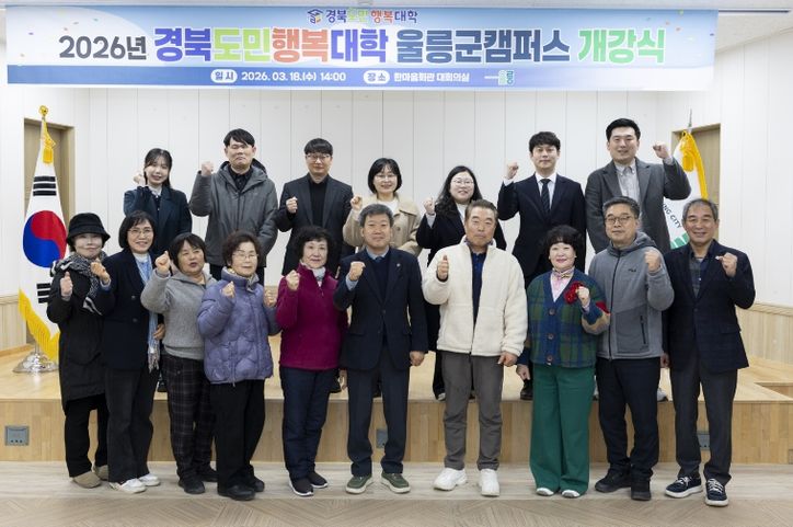 뉴한국방송뉴스통신사 신유철기자 기자 | 울릉군은 18일 오후 2시 울릉군청 4층 회의실에서 남한권 울릉군수(학장)를 비롯해 수강생과 관계자 등 20여 명이 참석한 가운데 ‘2026년 경북도민행복대학 울릉군캠퍼스 개강식’을 개최했다.