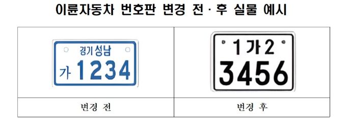 3월 20일 이후 신규 및 재등록 이륜자동차는 반드시 새 번호판을 부착해야 하며, 기존 소유자도 희망 시 교체가 가능하다.