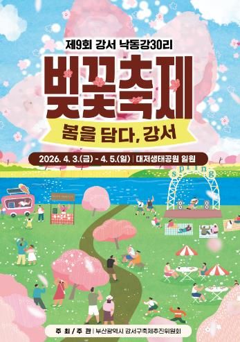 뉴한국방송뉴스통신사 신유철기자 기자 | 부산 강서구는 오는 4월 3일부터 5일까지 3일간 대저생태공원 일원에서 ‘제9회 강서 낙동강30리 벚꽃축제’를 개최한다.