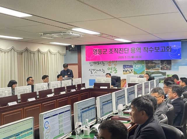 군은 23일 군청 상황실에서 군수와 부군수, 간부 공무원, 용역 수행기관인 ㈜중앙경영연구원 관계자 등이 참석한 가운데 ‘영동군 조직진단 용역 착수보고회’를 열었다.