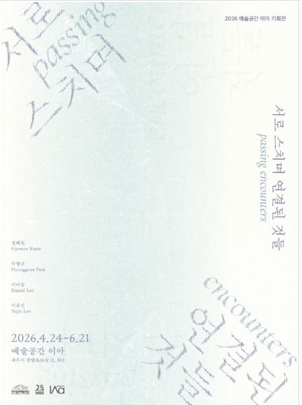뉴한국방송뉴스통신사 신유철기자 기자 | 제주문화예술재단은 창립 25주년을 맞아 오는 24일부터 6월 21일까지 예술공간 이아 B1 전시실에서 기획전 《서로 스치며 연결된 것들 : Passing Encounters》를 개최한다.