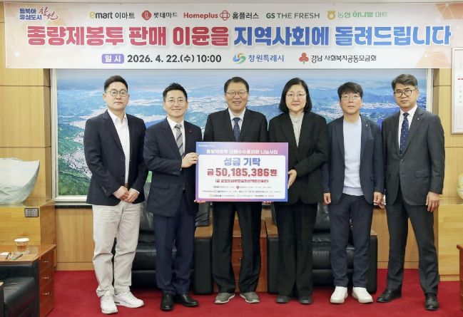 지난 2021년 창원시와 대형유통업체, 경남사회복지공동모금회가 맺은 협약을 바탕으로 시작돼 올해로 5회째를 맞았으며, 이번 성금을 포함해 현재까지의 누적 기탁금은 총 2억 6,500만 원에 달한다. 모인 성금은 경남사회복지공동모금회를 통해 관내 소상공인 지원 및 지역사회 복지 증진을 위해 뜻깊게 사용될 예정이다.