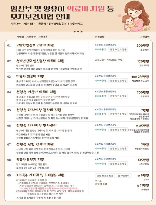 모자보건사업은'모자보건법'과'저출산·고령사회기본법'에 근거해 임산부의 건강한 임신·출산을 지원하고, 신생아와 영유아가 건강하게 성장할 수 있도록 돕는 국가 핵심 보건정책이다.