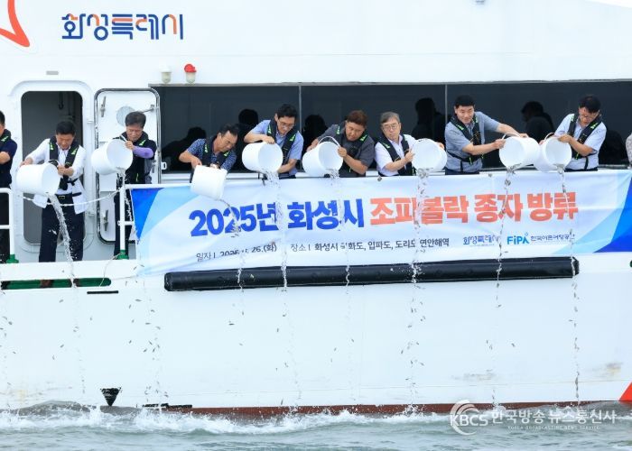 뉴한국방송뉴스통신사 신유철기자 기자 | 화성특례시가 26일 지속가능한 해양 생태계 조성을 위한 ‘2025년 해면 수산자원 조성사업’의 일환으로, 국화도·입파도·도리도 공유수면 일원에서 조피볼락 종자 130만 마리를 방류했다.