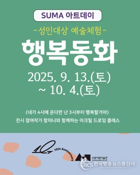 뉴한국방송뉴스통신사 신유철기자 기자 | 경기도 수원시립미술관은 전시와 출품 작품에 대한 이해를 높이기 위한 전시 연계 실기 체험 강좌 'SUMA 아트데이: 행복동화'를 운영하며 참여자를 모집한다.