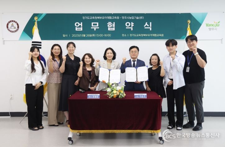 뉴한국방송뉴스통신사 신유철기자 기자 | 양주시농업기술센터가 지난 26일 경기도교육청북부유아체험교육원과 ‘유아 생태 감수성 함양 및 지역 자원을 활용한 농촌체험교육 협력 강화를 위한 업무협약’을 체결했다.