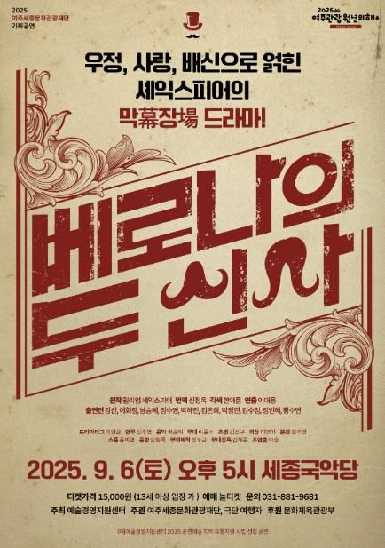 뉴한국방송뉴스통신사 신유철기자 기자 | 여주세종문화관광재단이 오는 9월 6일, 예술경영지원센터의 공모사업인 '공연예술 지역 유통지원 사업'에 선정되어 연극‘베로나의 두 신사’를 세종국악당에서 개최한다.