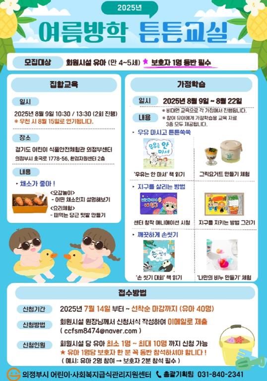 뉴한국방송뉴스통신사 신유철기자 기자 | 의정부시가 운영하는 의정부시 어린이식생활안전관리센터는 8월 9일부터 22일까지 ‘여름방학 튼튼교실’을 성황리에 운영했다고 밝혔다.
