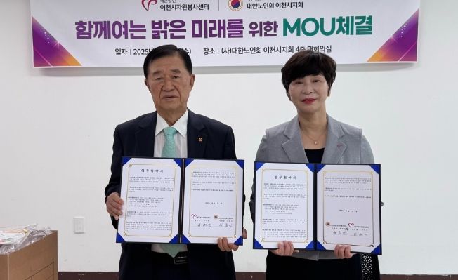 뉴한국방송뉴스통신사 신유철기자 기자 | 이천시자원봉사센터는 이천 지역 어르신들과 자원봉사자들이 함께 더욱 행복하고 건강한 공동체를 조성하고자, 대한노인회 이천시지회와 업무협약(MOU)을 체결했다.