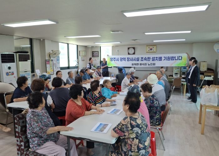 뉴한국방송뉴스통신사 신유철기자 기자 | 양주시는 최근 종합장사시설 건립과 관련해 광적면 광석리 마을회에서 찾아가는 주민설명회를 열고 주민 의견을 청취했다.