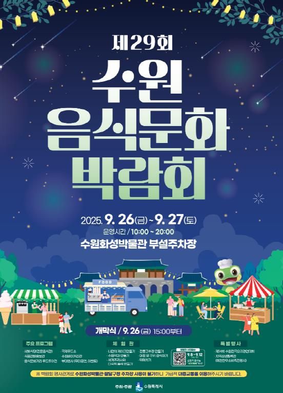 수원시 관계자는 “수원음식문화박람회 체험 행사는 시민이 식품 안전을 생활 속에서 자연스럽게 배울 기회”라며 “안전한 먹거리 선택과 식품위생 인식을 높여 건강한 식문화를 확산하는 데 이바지할 것”이라고 말했다.