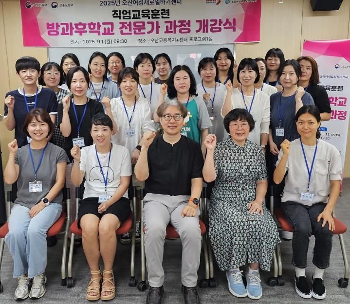 뉴한국방송뉴스통신사 신유철기자 기자 | 오산시는 지난 1일 오산고용복지+센터에서 2025년 오산여성새로일하기센터 직업교육훈련 개강식을 열고, ‘방과후학교 전문가 과정’을 시작했다고 밝혔다. 이번 과정에는 20명의 훈련생이 참여했다.