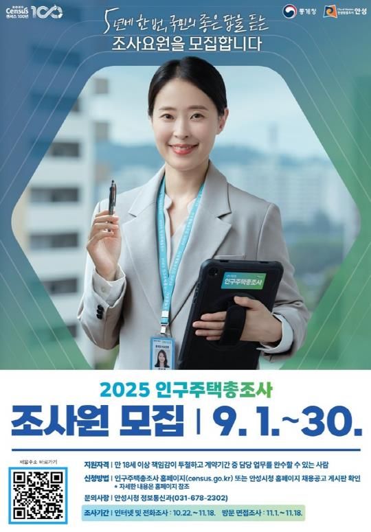 담당자는 “통계조사의 꽃이자 각종 인구·가구·주택 관련 국가정책 수립 및 평가에 활용되는 인구주택총조사에 많은 시민분들이 관심을 가지고 통계조사원에 지원해 주시면 감사하겠다”고 말했다.
