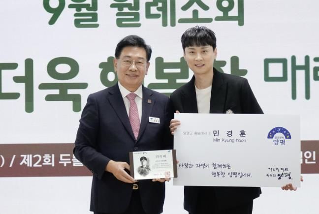 뉴한국방송뉴스통신사 신유철기자 기자 | 양평군은 3일 군청 대회의실에서 열린 9월 월례조회에서 가수 민경훈을 양평군 홍보대사로 위촉했다.