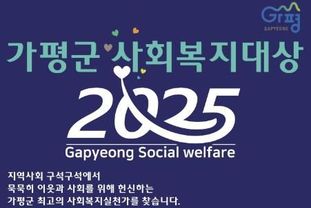 뉴한국방송뉴스통신사 신유철기자 기자 | 가평군은 가평군복지재단과 가평신용협동조합이 공동 주최하는 ‘2025년 가평군사회복지대상’ 후보자를 오는 10월 1일까지 접수한다고 밝혔다.