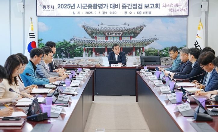 뉴한국방송뉴스통신사 신유철기자 기자 | 광주시는 5일 시청 6층 비전홀에서 김충범 부시장 주재로 2025년 시군종합평가 실적 향상을 위한 중간점검 보고회를 열었다.