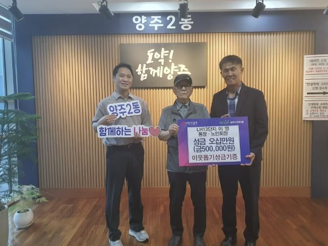 뉴한국방송뉴스통신사 신유철기자 기자 | 양주시 양주2동 행정복지센터는 지난 4일, LH13단지 이영 통장(노인회장)이 이웃돕기 성금으로 50만원을 기부했다고 밝혔다.