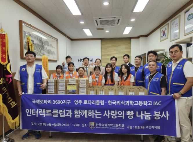 따뜻한 마음이 담긴 이번 기부는 학생들이 정성껏 구운 빵과 로타리클럽에서 마련한 샴푸, 바디워시 등 생필품으로 구성됐으며, 지역 사회에 온기를 전하고자 하는 나눔의 일환으로 이뤄졌다. 이날 기탁된 물품은 회천3동 저소득 독거노인 30가구에 전달될 예정이다.