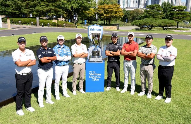 이날 포토콜에는 올 시즌 2승을 기록하고 있는 현재 제네시스 포인트 1위 옥태훈(27.금강주택), ‘백송홀딩스-아시아드CC 부산오픈’ 챔피언 김홍택(32.DB손해보험)을 비롯해 ‘코오롱 제67회 한국오픈’에서 우승한 사돔 깨우깐자나(27.태국), 일본의 ‘골프 영웅’ 이시카와 료(34.일본), 주최사 신한금융그룹 소속이자 현재 콘페리투어에서 활동하고 있는 김성현(27)과 일본투어에서 활약 중인 송영한(34), ‘국가대표’ 김민수(17.아마추어) 그리고 지난 8월 열린 ‘제2회 신한동해 남자아마추어선수권대회’서 정상에 오른 유민혁(17.아마추어)까지 총 8명의 선수가 참여했다.