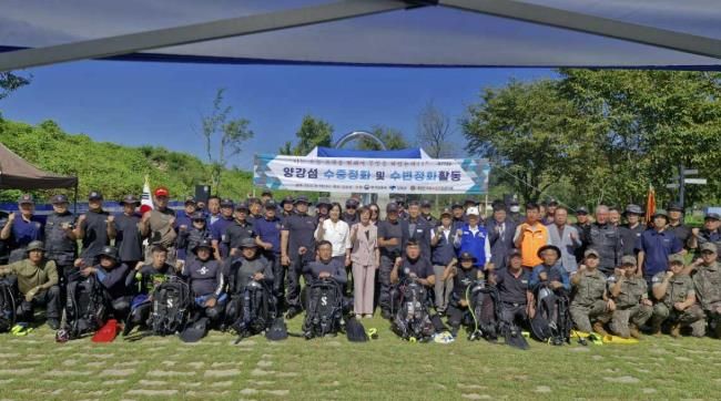 뉴한국방송뉴스통신사 신유철기자 기자 | 특수임무유공자회 경기도지부 양평군지회는 지난 10일 양강섬 일대에서 경기도지부 및 양평군지회 회원 100여 명이 참여한 가운데 수중·수변 정화활동을 실시했다.