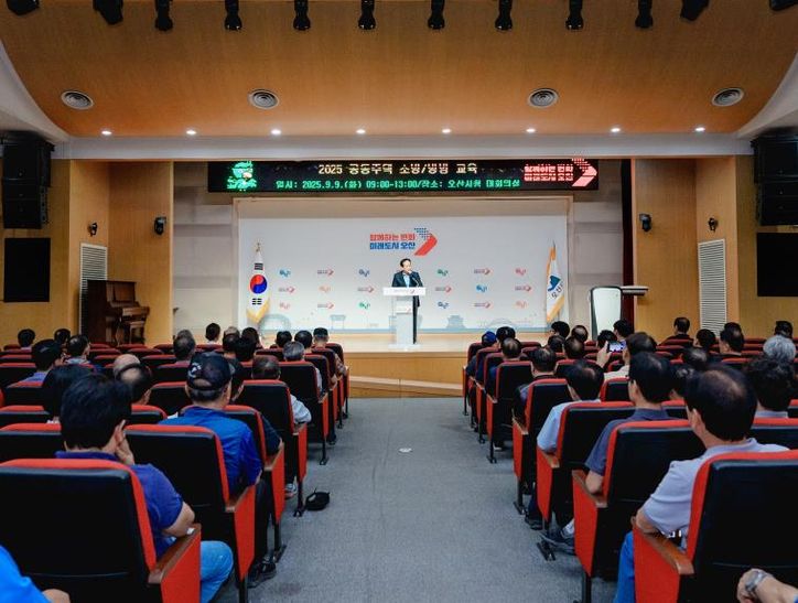 뉴한국방송뉴스통신사 신유철기자 기자 | 오산시는 지난 9일, 시청 대회의실에서 관내 의무관리대상 공동주택 106개 단지의 입주자대표회의 구성원과 관리주체 등 340여 명이 참석한 가운데 ‘2025년 공동주택 소방안전·방범 및 입주자대표회의 운영·윤리교육’을 실시했다고 밝혔다.