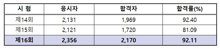 뉴한국방송뉴스통신사 신유철기자 기자 | 법무부는 지난 8월 2일 제16회 법조윤리시험을 실시한 결과, 응시자 2,356명 중 2,170명이 합격했고, 합격률은 92.11%로 작년 합격률(81.09%) 보다 11.02%p 상승했고 재작년 합격률(92.40%)과는 비슷했다.