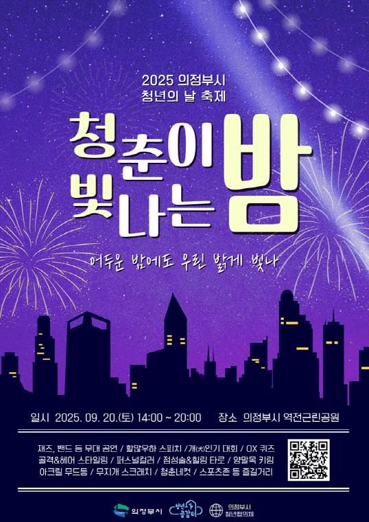 뉴한국방송뉴스통신사 신유철기자 기자 | 의정부시는 9월 20일 오후 2시부터 8시까지 의정부 역전근린공원에서 ‘2025년 청년의 날 축제(청춘이 빛나는 밤:청빛밤)’을 개최한다.