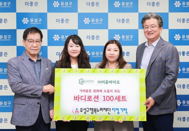 한편, ㈜리윤바이오는 유성구에 본사를 둔 바이오 R&D 전문 기업으로, 지난 2022년부터 매년 기능성 바디로션 세트를 기탁하며 지역사회 나눔과 ‘세계 아토피피부염의 날’ 캠페인 참여 등 사회적 가치 실현에 앞장서고 있다.