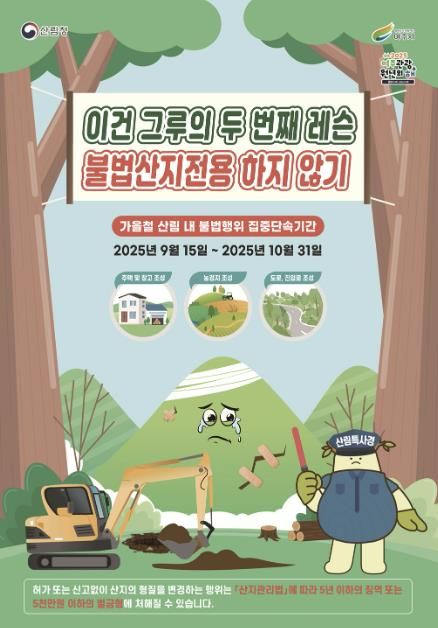 뉴한국방송뉴스통신사 신유철기자 기자 | 여주시는 2025년 9월 15일부터 10월 31일까지 임산물 수확기를 맞아 가을철 임산물 불법 채취가 증가할 것으로 예상됨에 따라 산림 내 불법행위 집중단속 기간을 운영한다.