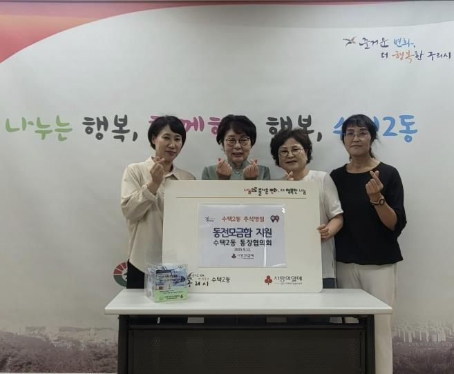 손태향 통장협의회장은 “기쁜 마음으로 모은 1,000원이 쌓여 60만 원이 됐다”라며 “작은 정성이 모여 큰 나눔이 되는 것처럼, 이번 성금이 추석 명절을 앞두고 어려움을 겪는 수택2동 이웃들에게 위로가 되길 바란다”라고 말했다.