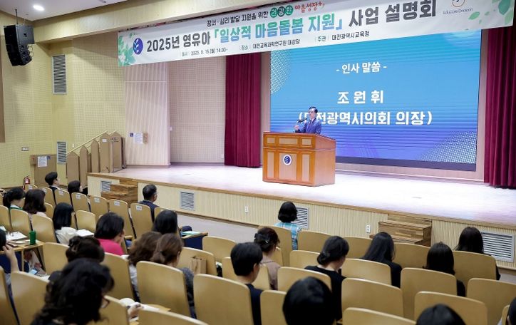 뉴한국방송뉴스통신사 신태공 기자 | 대전시의회 조원휘 의장은 15일 대전교육과학연구원에서 개최된 2025년 영유아 일상적 마음돌봄 지원사업 설명회에 참석해 보육 일선에서 최선을 다하는 보육인들께 감사를 표하고, 아이들과 보육인들 모두 행복한 보육환경 조성을 약속했다.