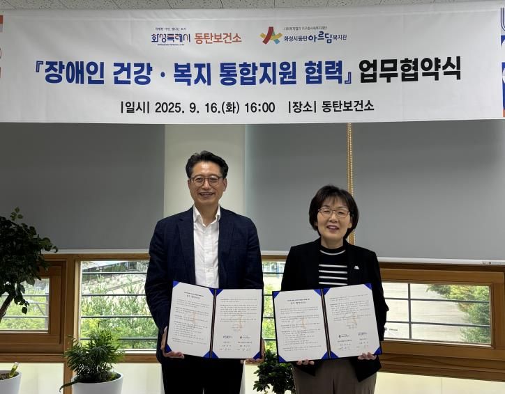 문자 화성시동탄보건소장은 “이번 협약을 통해 단순한 기관 간의 협력을 넘어, 장애인 당사자가 지역사회 내에서 보다 자립적이고 건강한 삶을 영위할 수 있도록 돕는 출발점”이라며 “앞으로도 복지관과 함께 지속가능한 협력 모델을 만들기 위해 노력하겠다”고 밝혔다.