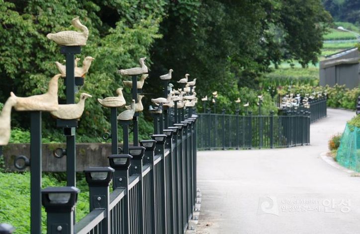 지역경관개선 분야에서는 마을의 고유 상징인 ‘옹기’를 활용한 솟대 테마길이 조성됐다. 길을 따라 설치된 옹기 모양의 펜스는 마을의 전통성과 정체성을 상징하며, 그 위에 세워진 솟대는 주민들이 직접 빚은 새 모양 도자기로 장식되어 있어 눈길을 끈다. 이 솟대는 마을 주민들과 방문객의 건강과 행복을 기원하는 의미를 담고 있어 테마길에 더욱 특별한 의미를 부여하고 있다.