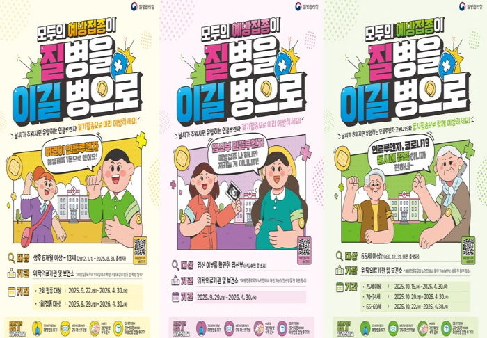 접종 기간은 2회 접종 대상 어린이는 9월 22일부터, 어린이(1회 접종 대상)와 임신부는 9월 29일부터 2026년 4월 30일까지다. 어르신은 ▲75세 이상 10월 15일 ▲70~74세 10월 20일 ▲65~69세 10월 22일부터 내년 4월 30일까지다.
