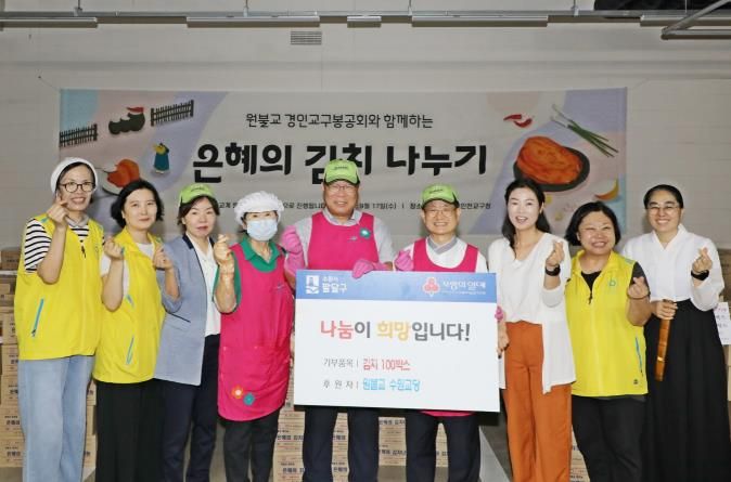 뉴한국방송뉴스통신사 신유철기자 기자 | 원불교 수원교당은 지난 17일, 수원시 팔달구(구청장 이상균)에 김치 100박스를 기부했다.