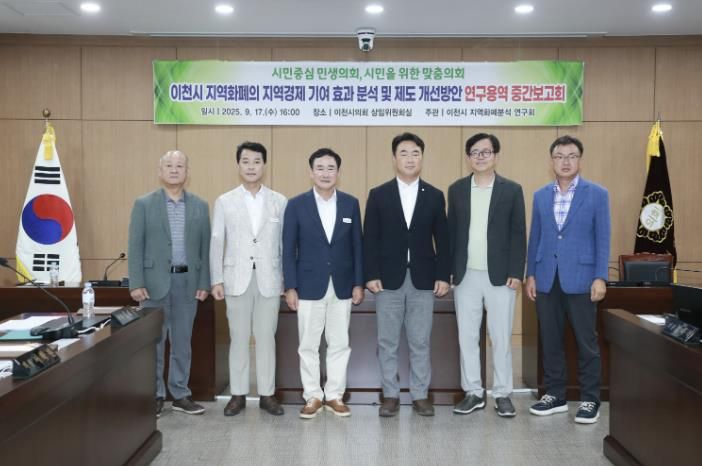 한편, 이번 연구용역은 오는 11월 최종보고회를 통해 연구 결과와 정책 제안이 공식 발표될 예정이며 이천시의회는 이를 토대로 지역화폐 운영의 제도적·실무적 개선을 적극 추진할 방침이다.
