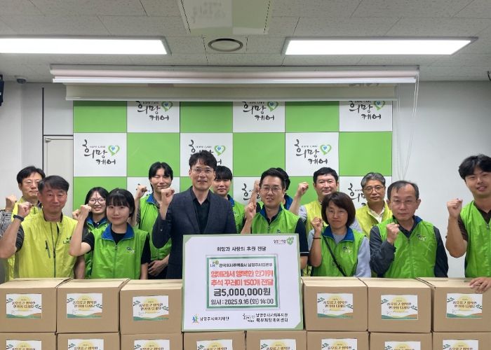 뉴한국방송뉴스통신사 신유철기자 기자 | 남양주시는 지난 16일, 한국토지주택공사 남양주사업본부가 추석을 맞아 북부희망케어센터에 온누리상품권 500만 원을 기부하고, 이를 활용해 취약계층 55가정에 명절 꾸러미를 전달했다고 19일 밝혔다.
