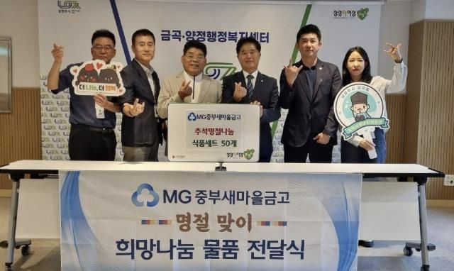 박백순 MG중부새마을금고 이사장은 “추석 명절을 맞아 소외된 이웃들에게 작은 정성을 전하고자 선물세트를 준비했다”며 “앞으로도 지역사회와 함께하는 따뜻한 금융기관이 되도록 노력하겠다”고 밝혔다.
