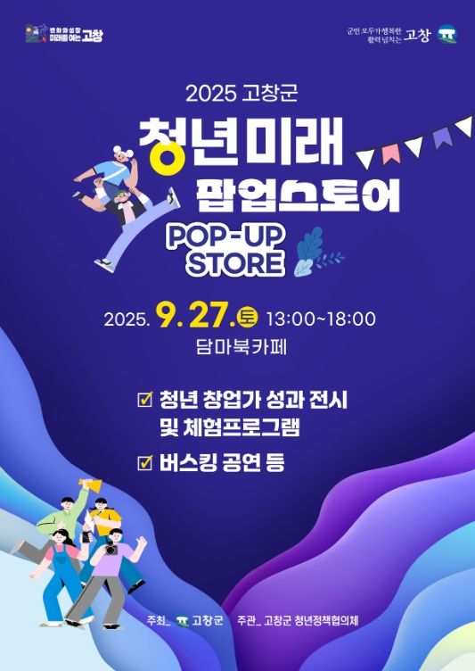 뉴한국방송뉴스통신사 김성의 기자 | 고창군은 오는 9월27일 오후 1시부터 담마북카페에서 2025 청년의 날 기념행사 ‘청년미래 팝업스토어’를 연다.