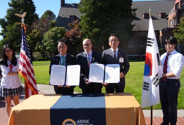 이날 협약식에는 강정구 평택시의회 의장, 정장선 평택시장, 애니 라이트 스쿨 데이비드 오버튼 이사장, 제이크 과드놀라 교장을 비롯한 학교 관계자, 학부모, 학생, 지역 인사들이 함께했다.
