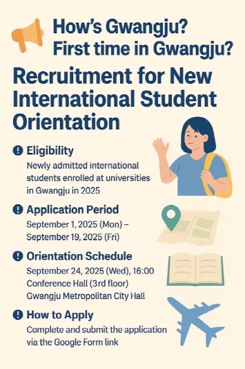 뉴한국방송뉴스통신사 김성의 기자 | 광주광역시는 24일 시청 대회의실에서 외국인 유학생 500여명을 대상으로 ‘2025년도 신입 외국인 유학생 교육’을 실시했다.