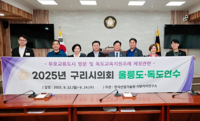 구리시의회 시의원과 의회소속 공무원 등으로 구성된 방문단은 22일 울릉군의회를 방문해 지난 3월 제346회 구리시의회 임시회에서 김한슬 의원의 발의로 제정된 '구리시 독도교육 지원 조례'의 구체적인 실행방안에 대해 심도 있는 논의를 나누었으며, 상호결연 도시로서의 협력증진 방안을 논의함으로써 교류와 우호 관계를 재확인하는 시간을 가졌다.