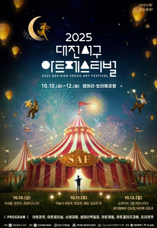 뉴한국방송뉴스통신사 신태공 기자 | 대전 서구는 10월 10일부터 12일까지 3일간 서구청 앞 샘머리공원과 보라매공원 일원에서 ‘2025 대전 서구 아트페스티벌’을 개최한다.