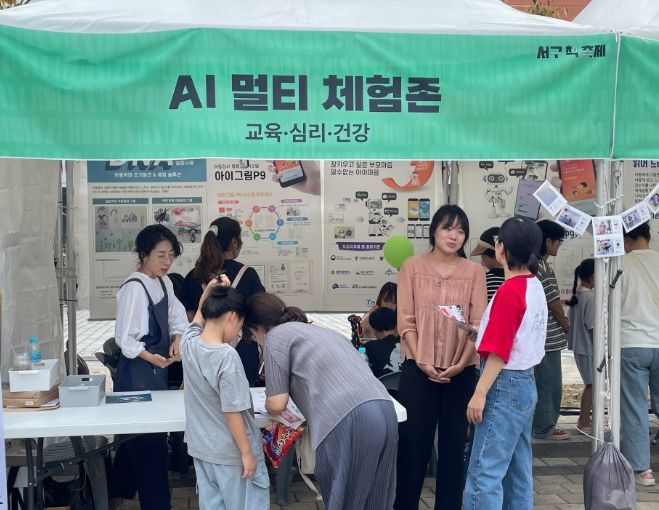 지난 27일 갈마문화공원에서 개최된 책 축제에서 서구는 관내 AI 기술 보유 여성 벤처기업들과 협업해 체험 공간을 운영, △AI 그림 분석 △AI 건강 검진 플랫폼 △AI 영어 학습 체험 등 첨단 기술을 선보였다.