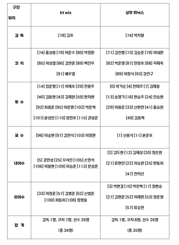 뉴한국방송뉴스통신사 신유철기자 기자 | 10월 1일(수) 오후 7시 고척스카이돔에서 개최되는 2025 KBO 퓨처스리그 챔피언결정전에서 맞붙는 KT와 상무의 출장자 명단이 발표됐다.