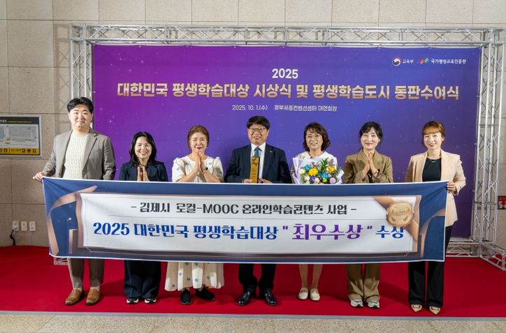 뉴한국방송뉴스통신사 김성의 기자 | 김제시가 생활 속 평생학습을 실천하고 있는 우수사례를 발굴해 시상하는 '제22회 대한민국 평생학습대상'에서 '디지털 학습시대 무형의 학습자산을 만드는 김제형 로컬-MOOC 구축사업'으로 올해의 평생학습사업 최우수상을 받았다.