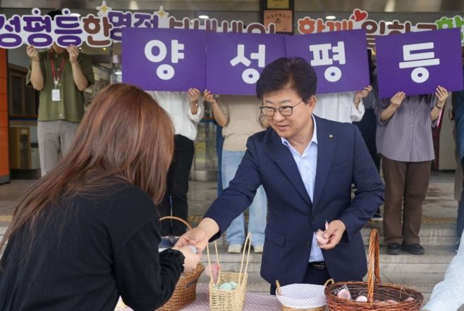 이날 현장에서는 실생활에서 사용할 수 있는 줄자 등 홍보 물품을 나눠주며, 성평등 실천 메시지와 대덕구의 저출생 대응 정책을 함께 안내했다.